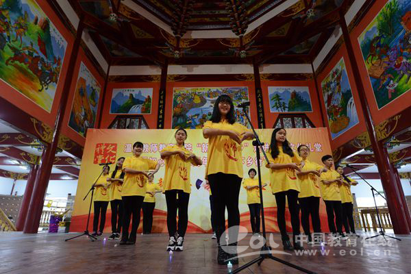 来自成人色情 教师成人色情 的一群未来女教师们,正在给当地200余位村民,表演精彩的获奖节目。不仅如此,她们还将帮助村民彩绘墙壁,给农村孩子们送去好看的图书和书法培训。