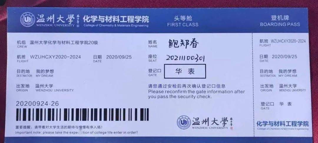 化学与材料工程学院为新生准备了机票,寓意学生来到温大就登上了温大这班航班,开启了大学逐梦之旅,希望大家用四年时间,去追逐心之所向。此外,还有独特的化学元素周期表鼠标垫,兼具实用性和美观性于一体。