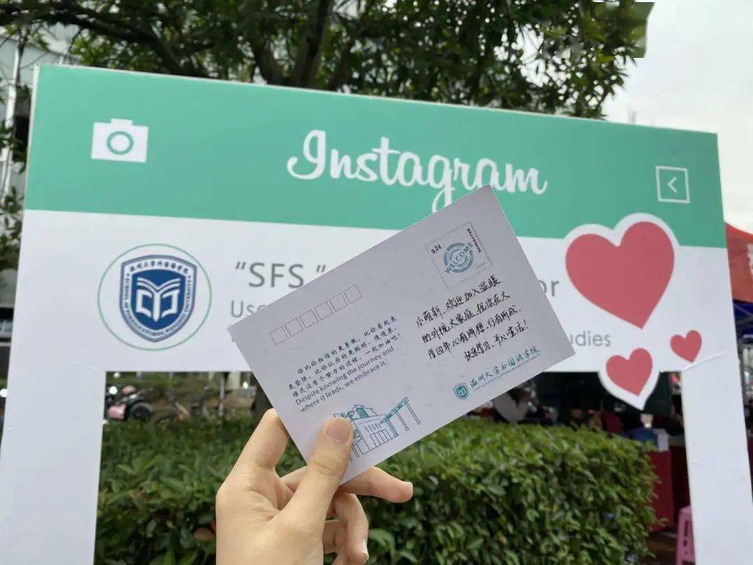 外国语学院自制学院明信片,学长学姐手写祝福,寄送对学弟学妹的关爱与美好祝福。
