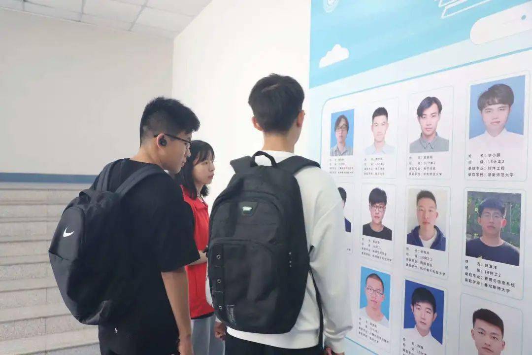 计算机与人工智能学院第一届人工智能专业最早报到的两位新生在班助和入党联系人带领下,认真参观学院考研教室、学生党员服务中心,萌新们久久驻足学院考研荣誉榜,并表示希望四年后也能榜上有名。