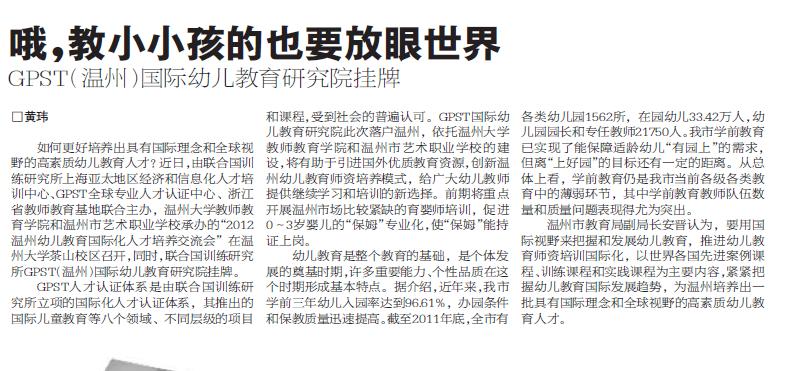 哦,教小小孩的也要放眼世界GPST(温州)国际幼儿教育研究院挂牌2012-03-28