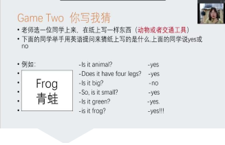 语言运用能力是思维发展的重要组成部分。为了更好地理解和运用,将语言融入到生活中,欣欣老师通过2个游戏:Where is my dog? 和你写我猜中,让孩子在积极地交流互动中,提高了对英语对话的兴趣与自信,将英语融会贯通。