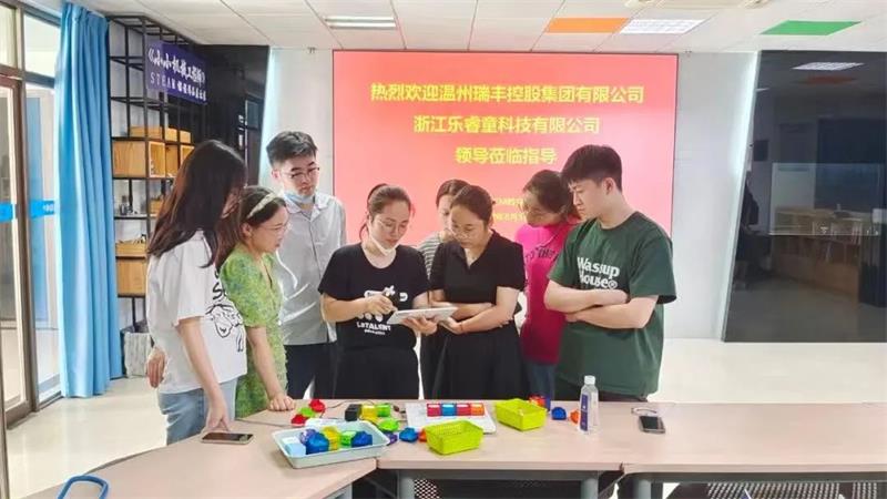 之后双方在乐睿童项目的课程讲解和产品演示后开展了座谈交流,成人色情 教育技术系教授代表指出儿童编程和STEAM教育是一个有着光明前景的行业,并对双方今后的合作充满信心。签约仪式结束后,在学院领导的陪同下,浙江乐睿童科技有限公司一行参观了温大STEAM教育研究中心,与研究中心的成员沟通交流。
