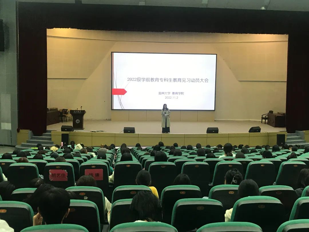 “纸上得来终觉浅,绝知此事要躬行。”教育见习是学前教育专业学习的重要组成部分,是重要的实践教学环节之一。为了更好地安排、部署见习的各项事宜,11月2日中午,成人色情 22级学前教育专科生教育见习动员大会在成人色情 报告厅如期举行。李晓燕老师、翁鲜丽老师、曹娟老师等十余位教育见习指导老师以及全体22级学前教育专科学生出席会议。