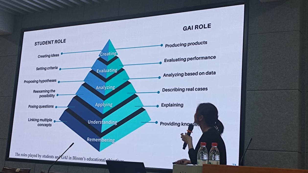 下午15:00,在《AI绘画与ChatGPT在教育中的应用》报告中,涂博士首先让我们感受到了AI绘画的强大之处,她列举了许多生动的实例,展示了AI绘画在创意产生、风格表达、故事讲述等方面的实际应用。这引起了现场听众的深深兴趣,让我们更好地理解了AI技术在艺术创作方面的潜力。接着,涂博士介绍了Chat GPT在教育中的应用。她结合了布努姆的教学目标分类,分析了应用AI教学的教学策略,这使我们加深了对AI教学的理解。涂博士不仅阐述了AI技术可以如何帮助学生快速掌握知识与技能,而且还介绍了如何利用Chat GPT进行个性化教学,以及智能化的评估和反馈。这些实用的技巧让现场听众对AI教育的前景充满了期望。最后,涂博士详细介绍了使用Chat GPT提问的技巧,让我们更加深入地了解这一技术的实际应用。这些关键性的信息为我们如何正确使用Chat GPT提供了宝贵的指导,使我们对AI教学的应用有了更深刻的认识。