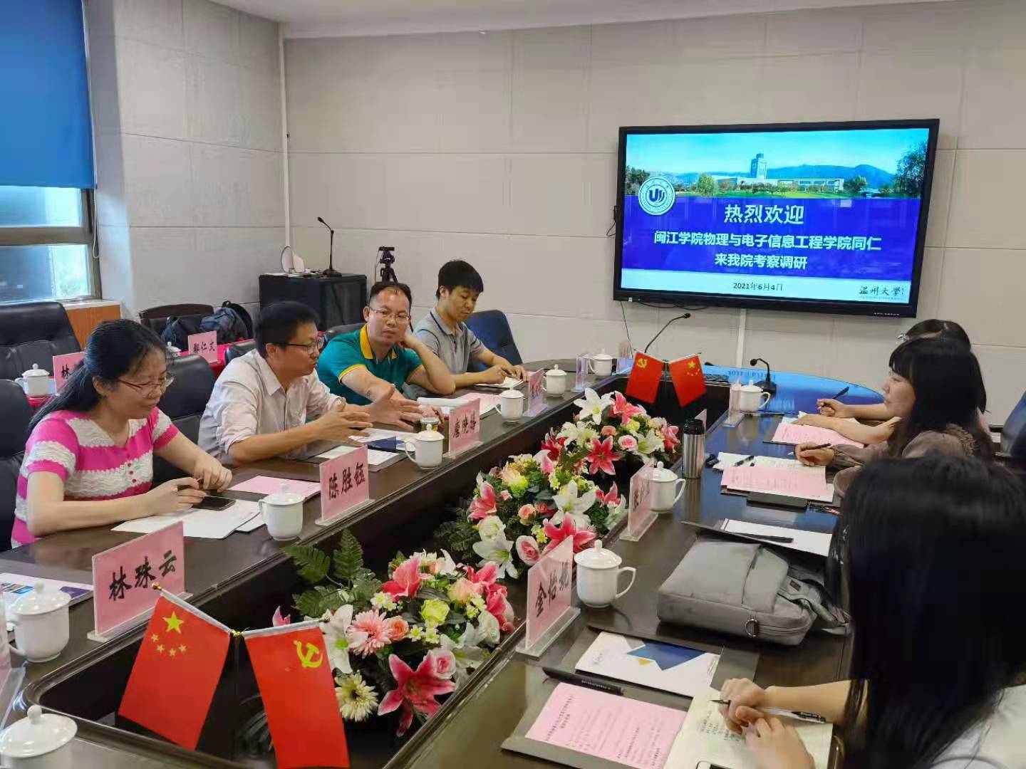 2021年6月4日上午,闽江学院物理与电子信息工程学院副院长唐晓腾一行10余人来成人色情 调研交流。学院党委副书记章园园出席接待,教务科相关负责人、教技系张新立老师参加座谈交流。