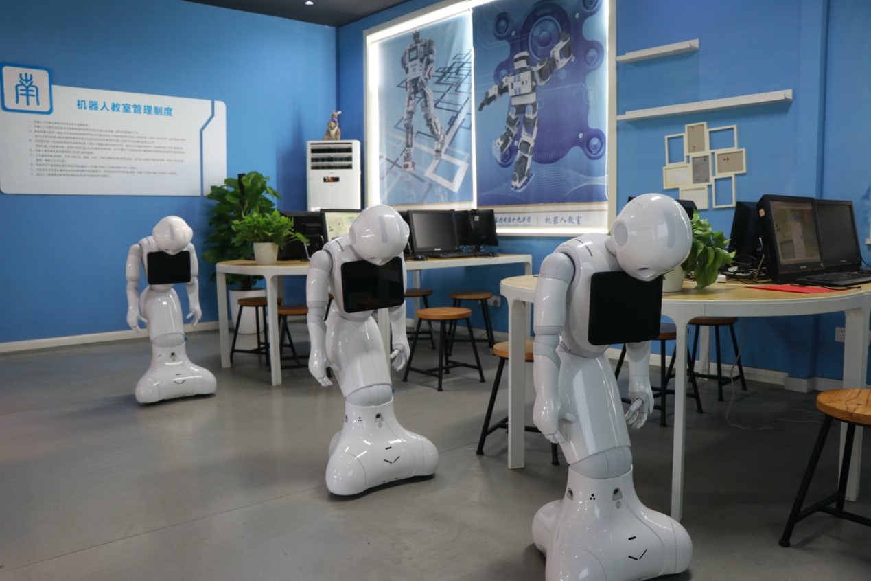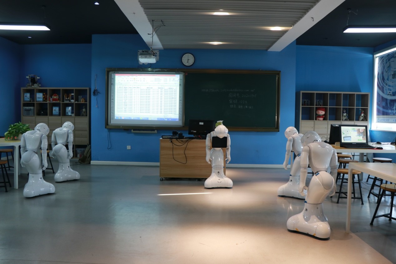 正式实习开始之前,陈赛老师组织了双方师生见面会,向实习生介绍了本校的特色以及校园文化,安排了本次实习工作的具体任务,并布置了信息技术常态课教学、社团教学以及课程编写工作。见面会结束后,陈赛老师带领大家共同参观了学校新建的Pepper机器人教室、足球乐高机器人教室、篮球乐高机器人教室,精美的布置和丰富多样的教学设备都让人赞叹不已。