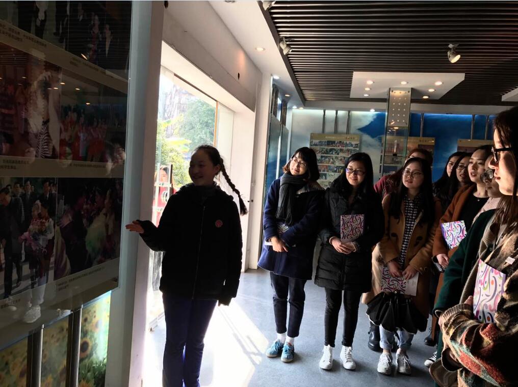 会后张校长带领我们一同参观校园,不时有孩子拿着各种乐器前往训练馆,耳畔听到孩子们奏出的优美琴声。实习生还在校长亲自带领下参观了校史馆。在小小讲解员的带领下,我们更加深刻地体会到了少艺校“小学基础教育与少儿艺术教育相结合”的办学特色。通过小小讲解员自信从容的讲解,实习生们感受到了温州市少年艺术学校的学生们的优秀品质。