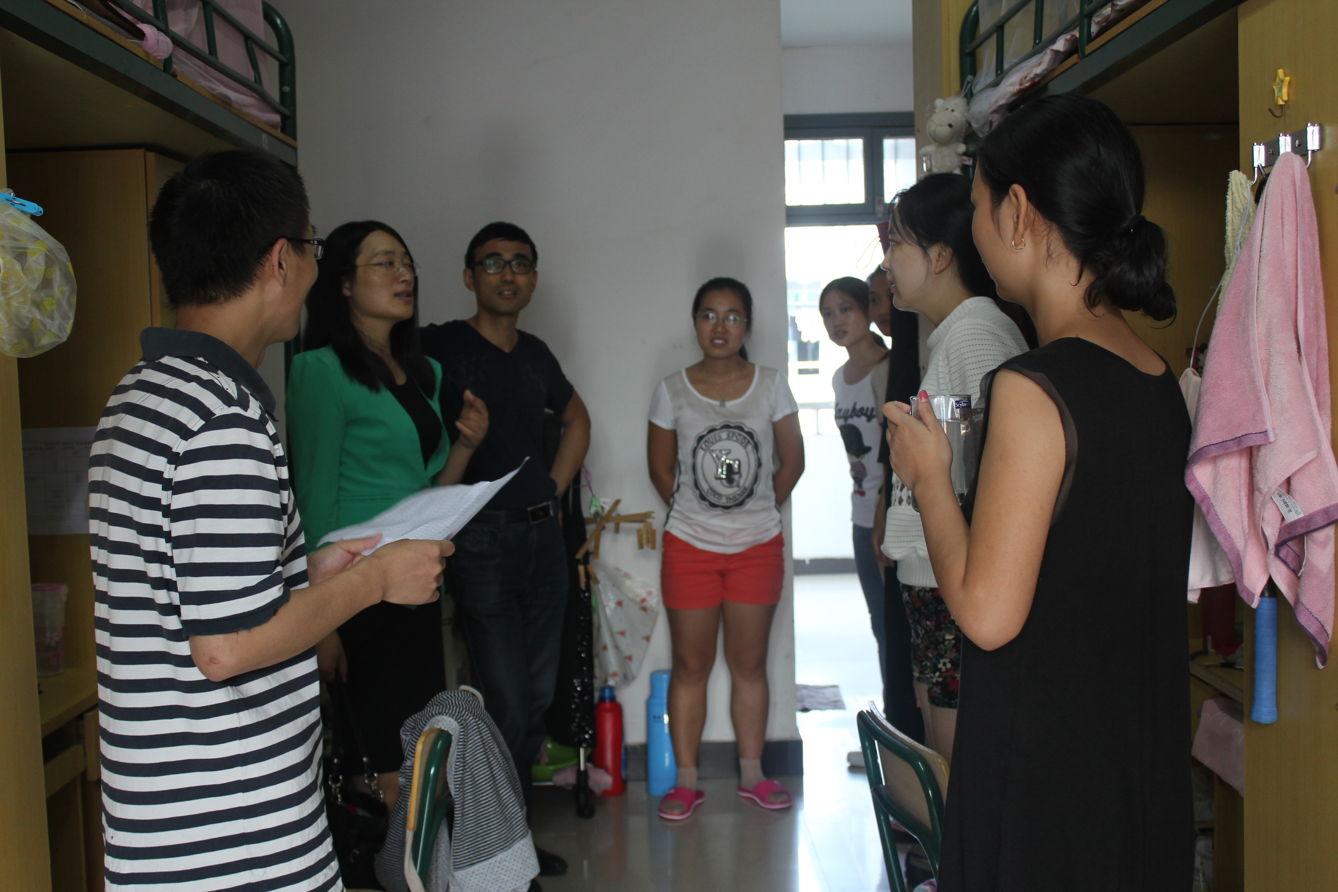 2014级研究生新生。 老师们走访了每一个新生寝室,首先对新生的到来表示诚挚的欢迎。周奇老师语重心长地与新生们交流,指出研究生是新的起点,要善于运用成人色情