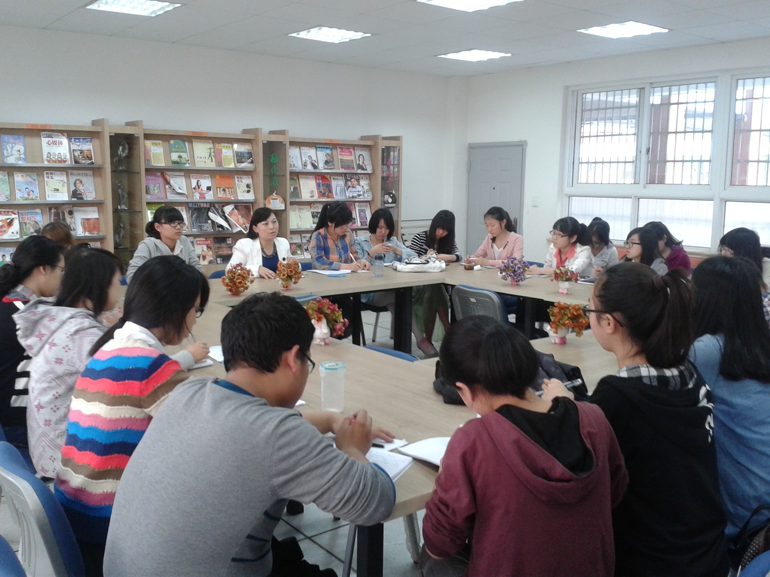 4月18日下午,谭莉老师组织了见习交流大会,同学们都积极分享了自己的见习感言,提到了上课后的收获与感触,及这两周的难忘的故事。有同学指出,在以后的见习中,要每天制定见习计划,让见习生活更加充实。还有同学指出在上课中纪律不好导致他不能再上下去,看来同学们还需要积累教学经验。会议结束后,各小组把盆栽送给了见习导师,并给学生们也送了一些小礼物,学生们都流露出对同学们的不舍,有不少学生都难过得哭了,同学们都很感动。老师对同学们的印象也很好,表扬部分小组同学很有礼貌。