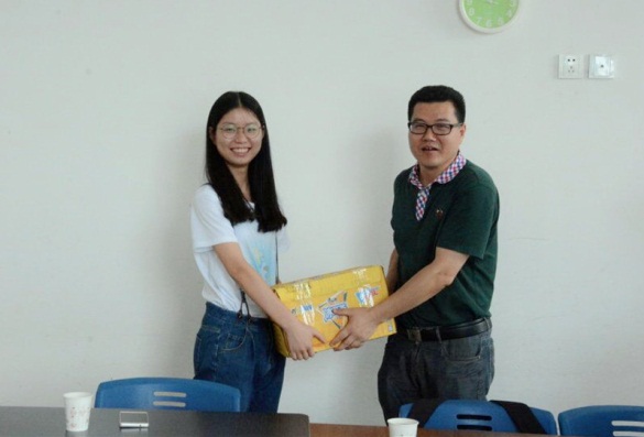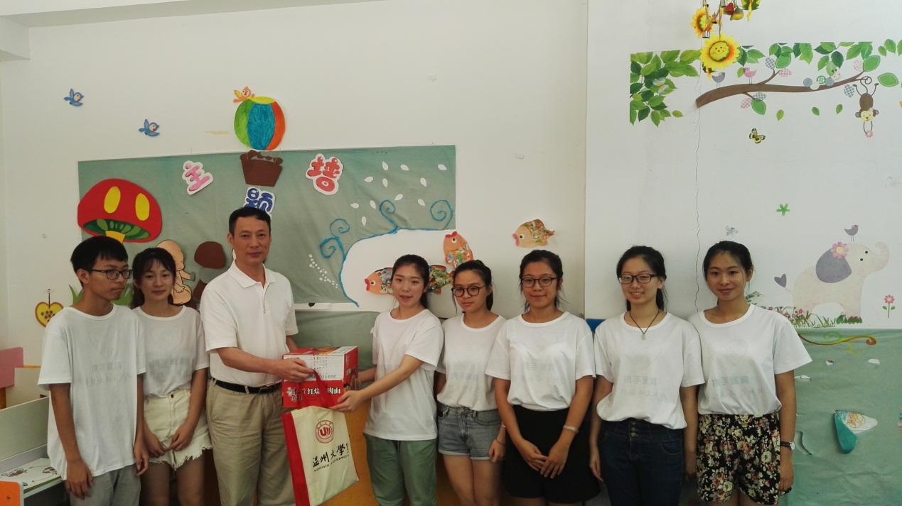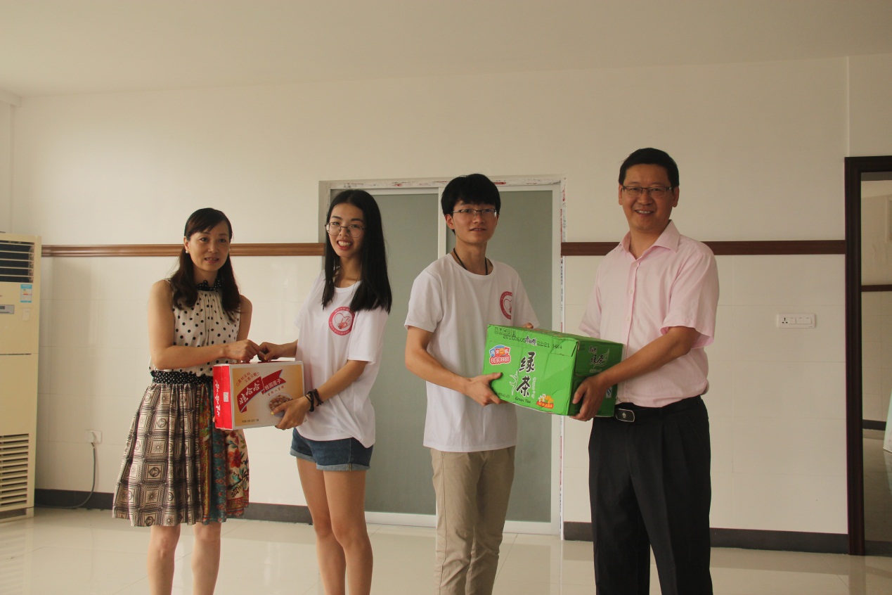 图为2016年7月14日,党总支副书记杨丽君、辅导员严晓秋以及指导老师陈铿赴青绘实践队进行慰问