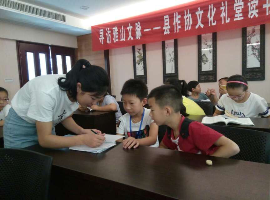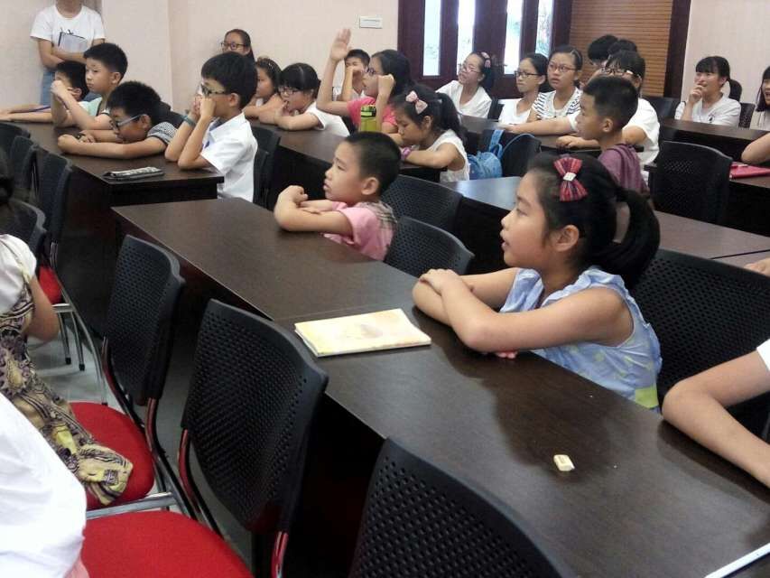 第一堂课是古韵私塾实践队的特色课程——经典国学。它秉承了实践队的主题——传播私塾文化。经典国学是中国传统文化的精髓,对中国政治、经济、军事等方面都起着重要的影响,对中华民族的伟大复兴也起着重要的作用。经典国学是经过时间和历史沉淀的文化精品。孩子们的青春活力拼凑出了一幅夏日朗诵图,也许这就是中国古典文化的独特韵味吧!为了让孩子们更加喜爱经典国学,古韵私塾的准老师们费尽心思。汉字是文化传承的载体,因此老师决定采用闯关游戏的方式,来一场汉字英雄大赛。新颖的上课方式果然激起孩子们的积极性。本次比赛主要把同学们分成两组,以抢答的模式进行。老师提问关于夏天的成语,孩子们都想要说出自己知道的答案,比如万里无云,烈日炎炎。孩子们最喜欢的环节就是成语填词啦,当然有的成语简单,有的难,这样更利于孩子们巩固的已有知识和新的知识。下一关的游戏是擦亮眼睛。顾名思义就是找出语句中的错别字并加以改正。不管是低年级的孩子,还是高年级的孩子都在为自己的队伍争取得分,这样也锻炼了孩子们的团队意识。下一个环节需要孩子们的智慧啦。猜字谜的时候,孩子们的积极性也很高。老师一说抢答,就有很多孩子举起了手。有一道题大部分孩子都举手了,老师就让孩子们一起回答。最后一部分是成语填空,孩子们有的成语不会写就和同桌相互讨论……时间过的很快,一节课就这样结束了。