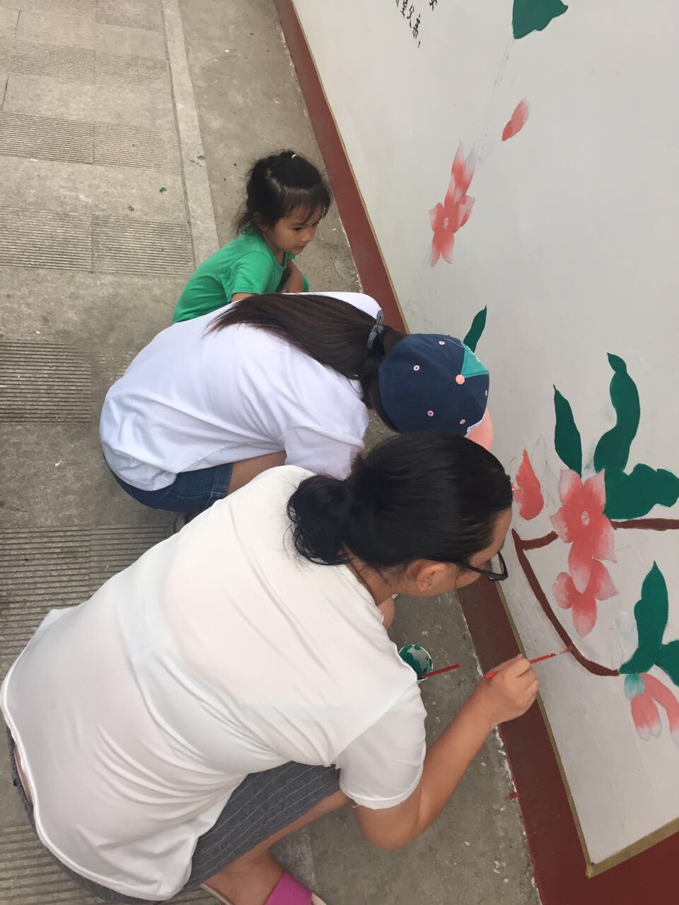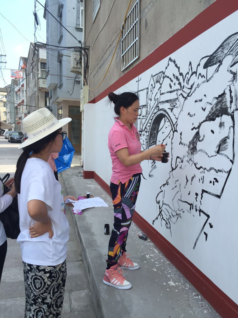 下午休息过后,我们青绘实践队员们又元气满满地投入到墙绘当中去。在陈铿指导老师的帮助下,我们的效率明显又提高了很多,而且从陈铿老师这儿学到了非常实用的绘画技巧,对于我们接下来几天的绘画帮助非常得大。经过这几天的绘画,我们更加的有经验,画画也越来越上手。陈铿老师也非常地尽职尽责,从下午开始就帮着我们一起绘画,一直到晚上七点多才吃晚饭,这让我们既感动又佩服。在吃饭的间隙,老师也非常亲切地与我们交流经验。吃过晚饭后,我们就抓紧时间打开投影进行描线,即使晚上蚊子一个劲地咬我们,但是我们青绘实践队员们毫无怨言,依旧一丝不苟地勾勒着每一条线,彰显了我们教师成人色情