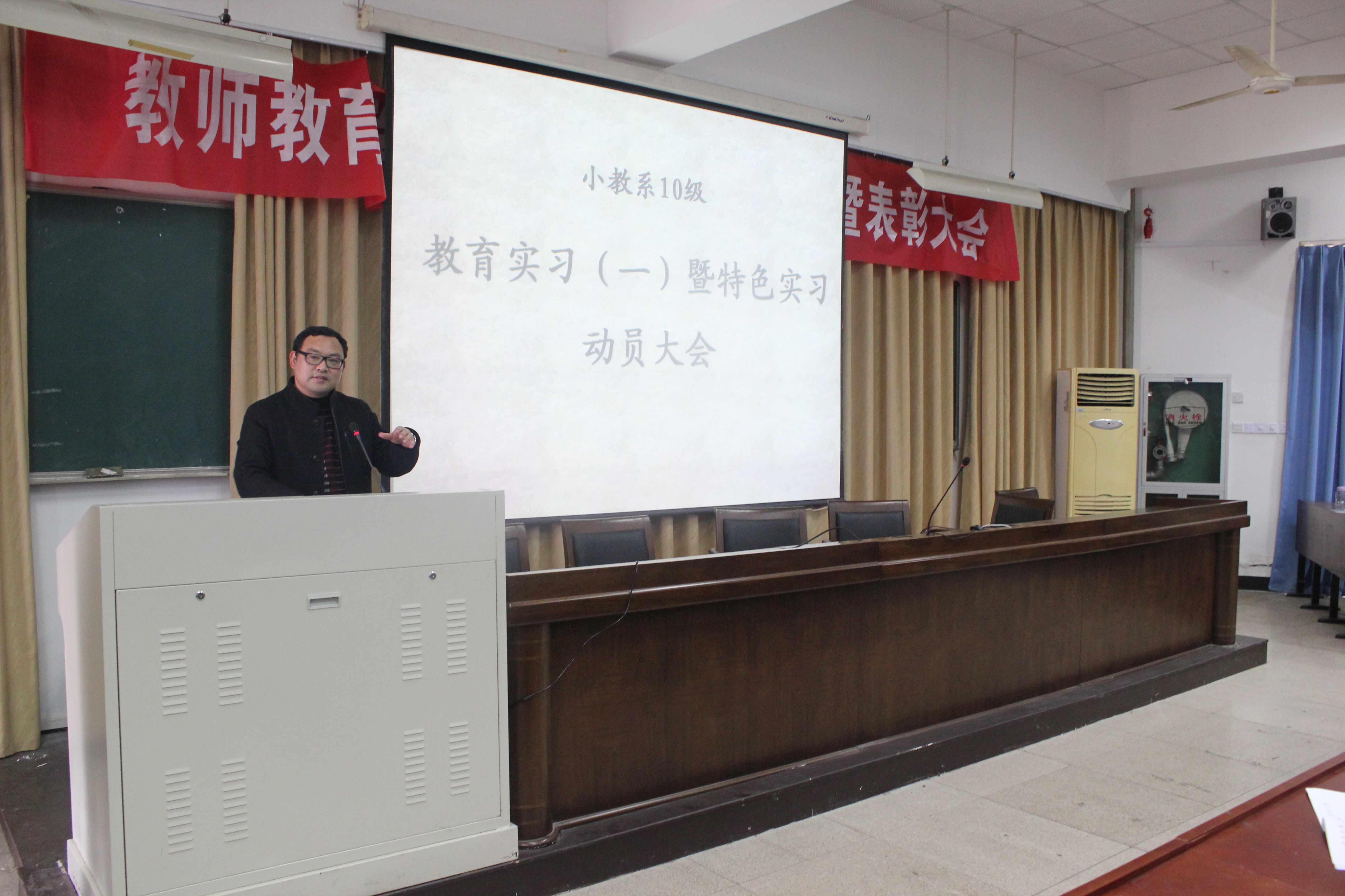 小教系10级教育实习(一)暨特色实习动员大会在北校区3-101教室召开。大会由本次实习活动总负责人张龙老师主持,小教系书记周鹤新、全体实习带队指导师以及小教系10级全体学生出席了本次动员大会。