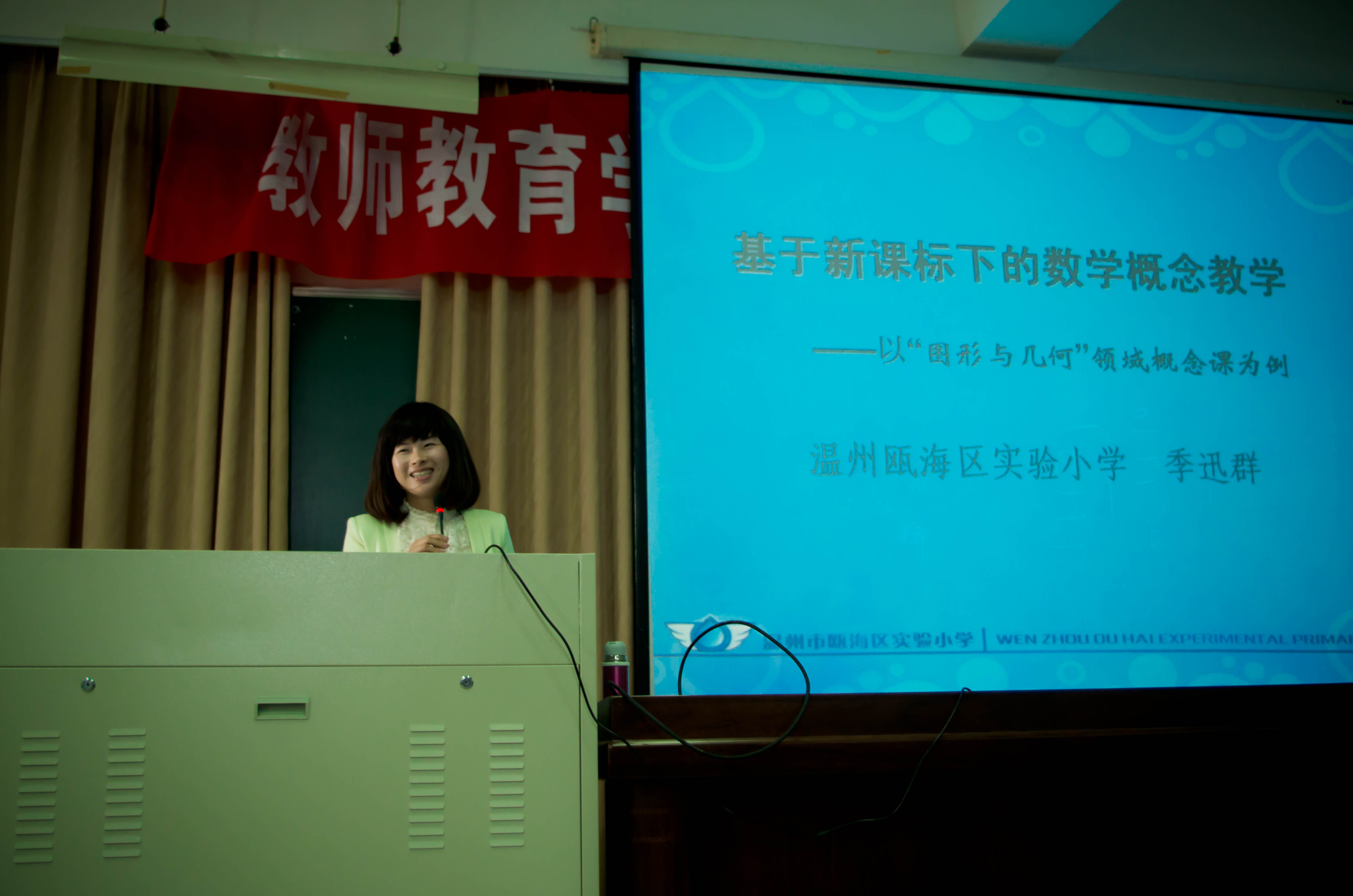 小教系在北校教育楼101室举办了本学期第一次名师大讲堂活动。由温州市瓯海区实验小学教导主任,小学高级教师季迅群担任本次讲堂的主讲人,讲座主题是“基于新课标下的数学概念教学——以‘图形与几何’领域概念课为例”,本次活动由小教系主办,小教工作室承办,小教工作室陈汀主持。