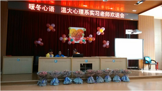 时光荏苒,眨眼间已经过了八周,我们的实习也将结束。在实习的最后一天,百里路小学心育组的老师们连同七个实习班的孩子们为我们七位实习生举办了一场别开生面的欢送会――暖冬心语。