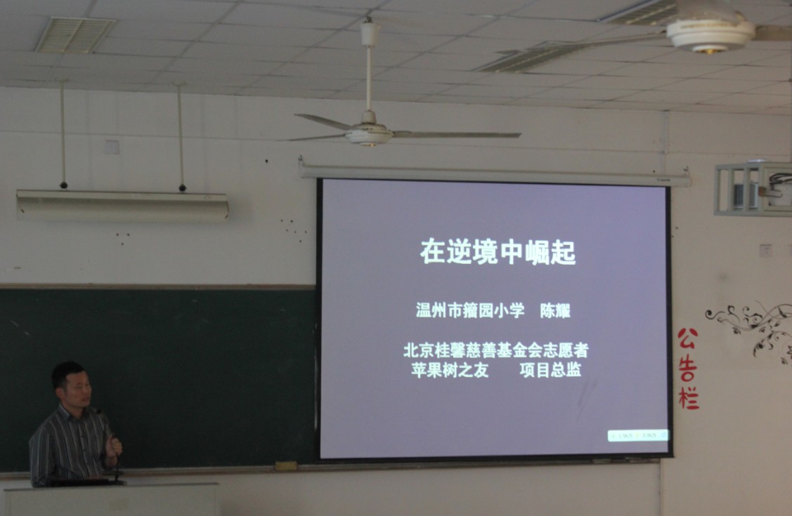 小教系在北校教育楼301室举办了第三次名师大讲堂活动。本次讲座的主讲人由温州籀园小学老师陈耀担任,主题为“在逆境中崛起——我的工作历程”。本次活动由小教系主办,小教工作室承办,小教育系主任蔡志凌老师主持。