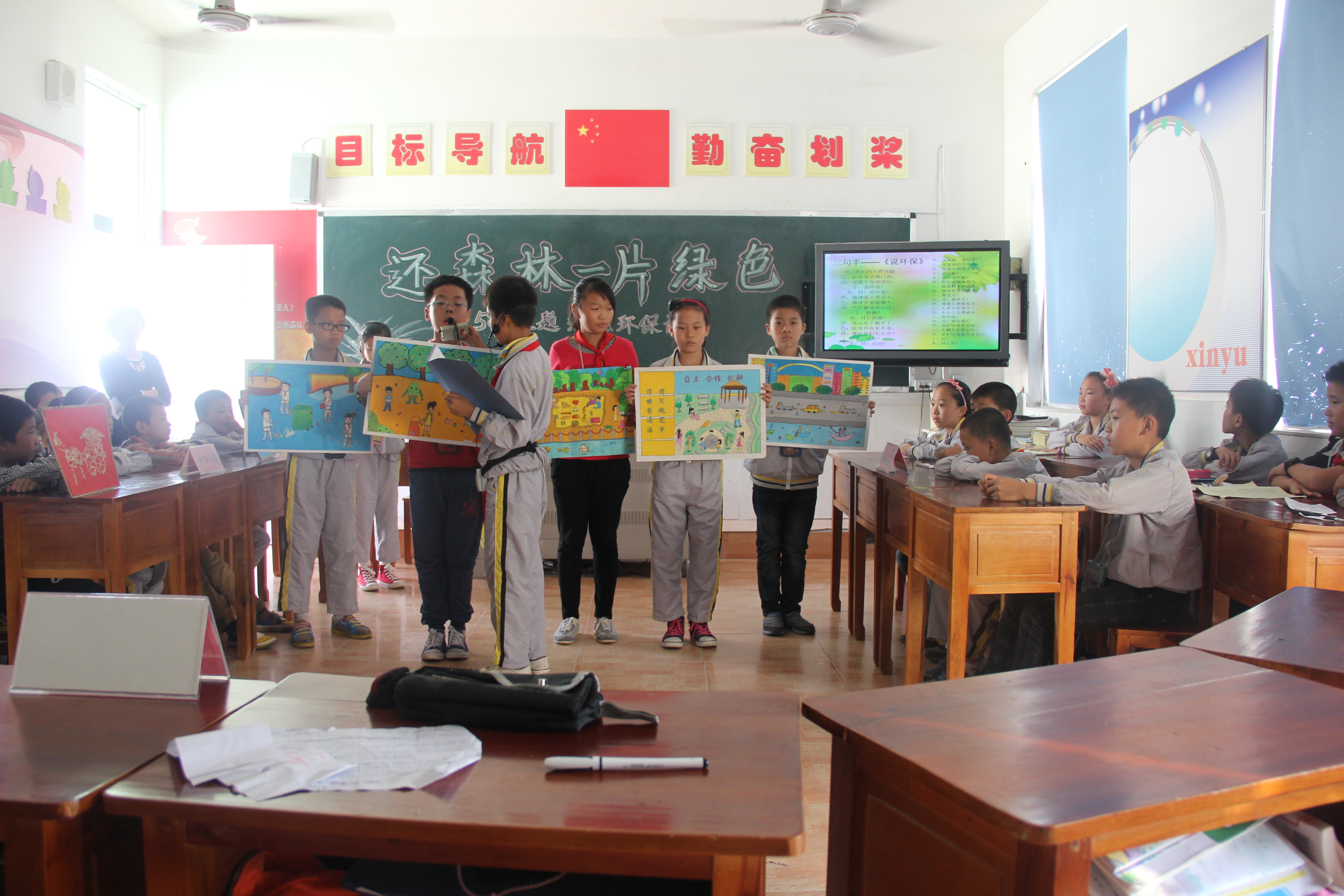 在学校领导的陪同下,我们旁听了一节生动有趣且充满教育意义的环保主题班会,整节课主要由学生自己主持,课堂内容紧贴生活实际,形式多样,从诗歌朗诵到小品表演,从歌唱环保到废物回收再利用,无不体现出学生高度参与的热情和较强的动手操作能力,展示了学生较强的综合素质。听完了这节极具教育意义的环保课后,校方组织了一场讲座,讲座期间讨论热烈,气氛活跃,折延东教授作为此次讲座的主讲人,他就绿色教育的发展现状、如何继续深化本校绿色教育、如何打响绿色教育牌以及本校绿色教育实施中出现问题的解决策略进行了深入的阐述,另外还就学校的校本课程《我爱绿色》如何改进给出了很多的建议。