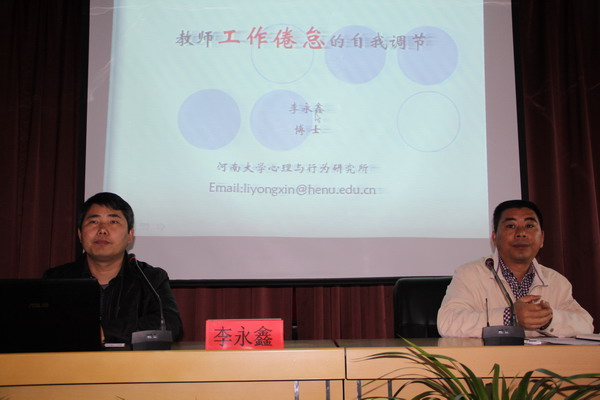 项目的活动之一,心理系特邀河南大学心理与行为研究所李永鑫博士赴洞头为东屏镇小和城关二小的老师们举行了题为《教师工作倦怠的自我调节》的讲座。