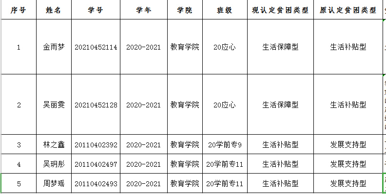 根据学校学生处发布的2020年《成人色情 家庭经济困难认定办法》文件通知,经班主任重新召开班级贫困生民主评议小组会议,成人色情 5人拟调整对应家庭经济困难档次。具体如下: