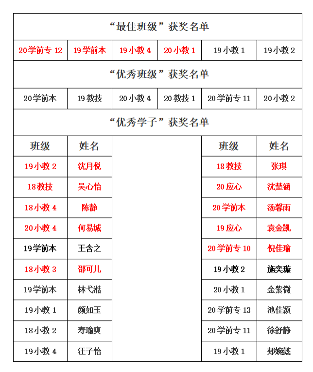 经过成人色情 “最佳班级”与“优秀学子”现场展示评比,依据专家评委、教师评委、学生代表的投票结果,共评选出成人色情 第十一届“最佳班级”6个(本科5个、专科1个),“优秀班级”6个(本科5个、专科1个),“优秀学子”20名(本科17名、专科3名)。拟推荐加粗标红的班级与个人参评学校2020-2021学年“优良学风班”和”学习标兵”评选,如有异议,可来电、来信、来访的形式反映问题,以个人名义反映问题的提倡真实署名,联系学工办孟江龙老师,电话:0577-86599689。公示时间:2021年10月23日—10月29日。公示内容如下: