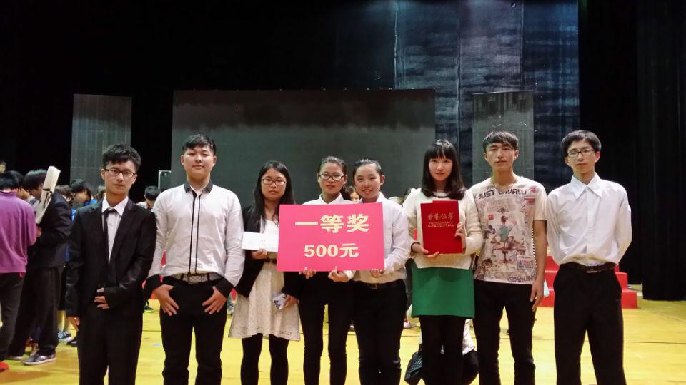 13小教数学班带来的精彩的情景剧表演。只见台上13小教数学班的3名男生高举成人色情