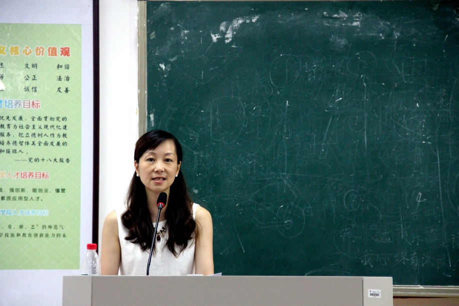 院党总支副书记杨丽君老师讲话,她指出今年适逢G20峰会在杭州召开,一号台风又逼近浙江,安全重于泰山,同学们在投身社会实践的同时注意安全,期待同学们取得自己满意的成绩,收获成长。纸上得来终觉浅,绝知此事要躬行。丽君书记希望大家扎实实践,学以致用,团结协作,同时确保安全,注意身体健康。用心观察,用心思考,用心总结,在实践中展示风采,锤炼品质,练就本领。