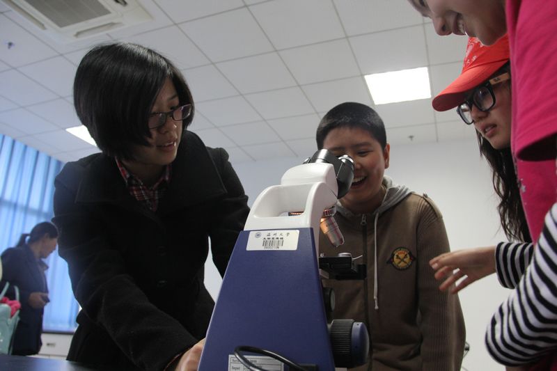 本活动共开放5个实验室,分别为:蒙特梭利教学实验室、感觉统合实验室、心理实验室、自然科学实验室、沙盘演练室。下午2:00实验中心迎来了一群欢快的小朋友,他们是城市管理与行政执法局环卫处职工子女。他们对各实验室的设备与教具表现出极大的热情与好奇,面对蒙特梭利教学实验室的各种好玩又益智的教具他们表现得非常兴奋,刚体验完数学教具,又跑过去体验各种感官教具;感觉统合实验室更是让他们大开眼界,这里有海洋球池、双人协力车、平衡木等等;显微镜下的微观世界更是让他们惊奇不已,他们认真听着教师的讲解,测量细胞直径……