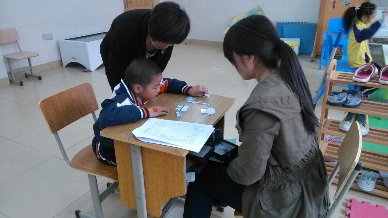 首先,陈秋珠老师根据其丰富的测量经验,向工作坊成员详细地讲解了对特殊儿童尤其是智障儿童进行测试时作为主试应注意的地方,并针对每位成员各自负责的分测验解说了具体的实施步骤。为保证测验结果的可靠性,此次测验在几个不同的教室严格按照指导手册展开,且均采用个别测验;同时,主试除了记录分测验结果及计算分数外,更仔细地记录下孩子们在测验时的反应和状态,以便对测验结果做出更为准确的解释,提出更为有用的建议。