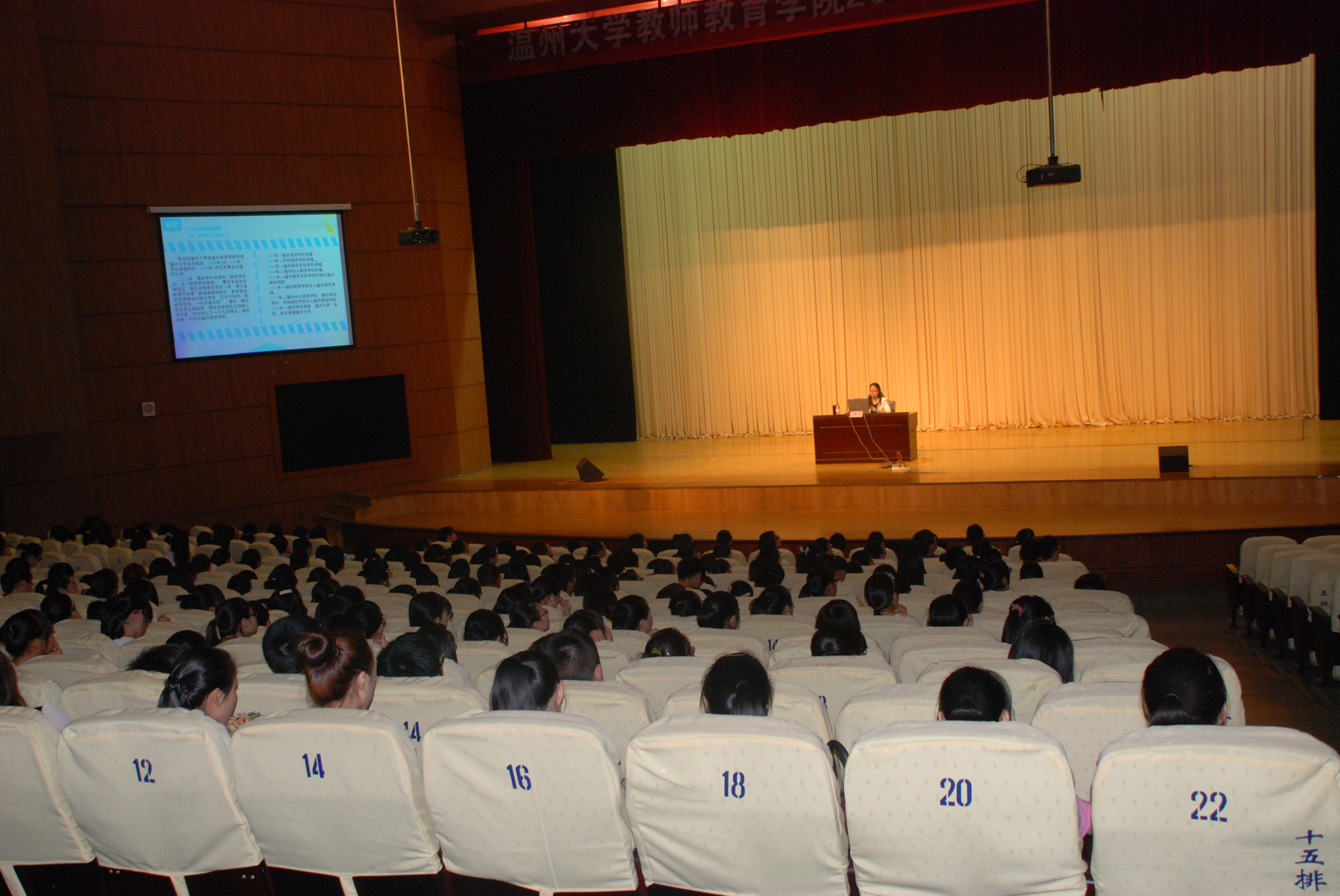 为新生们精心准备的入学礼物也将依次呈现。9月5日上午,由学院党总支副书记嵇小怡主讲的“我的大学第一课”在大学生活动中心演艺厅开讲,250来名刚刚踏入温大的本科新生及成人色情