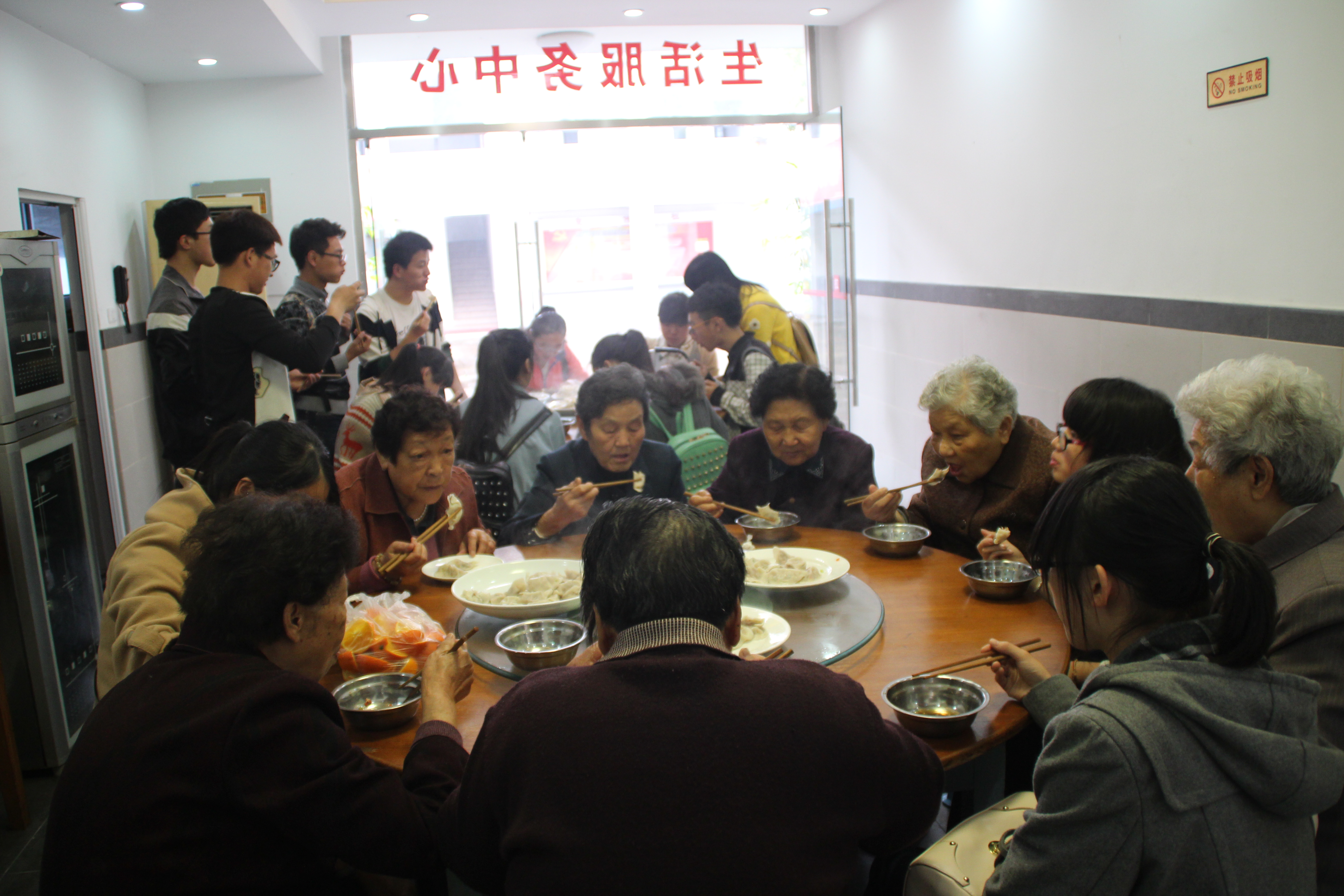 志愿者们和爷爷奶奶一起来到了军分区的食堂,开始了包饺子活动,在爷爷奶奶的细心指导下,一盘盘美丽的饺子呈现在盘子里。不久,一盘盘热气腾腾的饺子出锅了,大家首先让爷爷奶奶尝了水饺,爷爷奶奶大赞好吃,随后志愿者们和爷爷奶奶们围坐在一起,开始了我们的饺子宴。