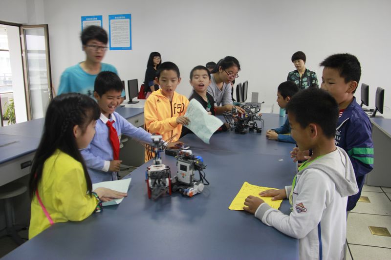 实验室里,在认真听取各实验室负责老师讲解的同时,孩子们不时提出疑问,或驻足观看,或侧耳倾听,或踊跃参与,或互动交流。在自然科学室里,他们忙着做装片,观察显微镜下的神奇世界;心理测量室里,他们饶有兴趣地完成量表的每一道测试题;机器人实验室里,他们体验了智能机器人夹取、移动、投篮等运作全过程。