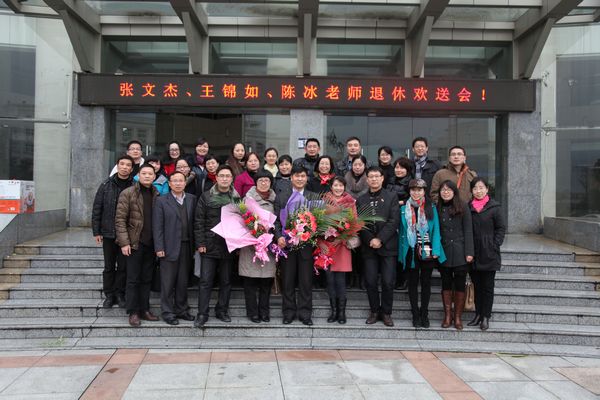 在南校区岩松堂展示厅举行张文杰、王锦如、陈冰三位老师老师退休欢送会。学院领导胡来林、蔡联群、郑信军、孙芙蓉、彭小明、嵇小怡及部分教师代表、毕业生代表出席了本次会议,蔡联群书记主持。
