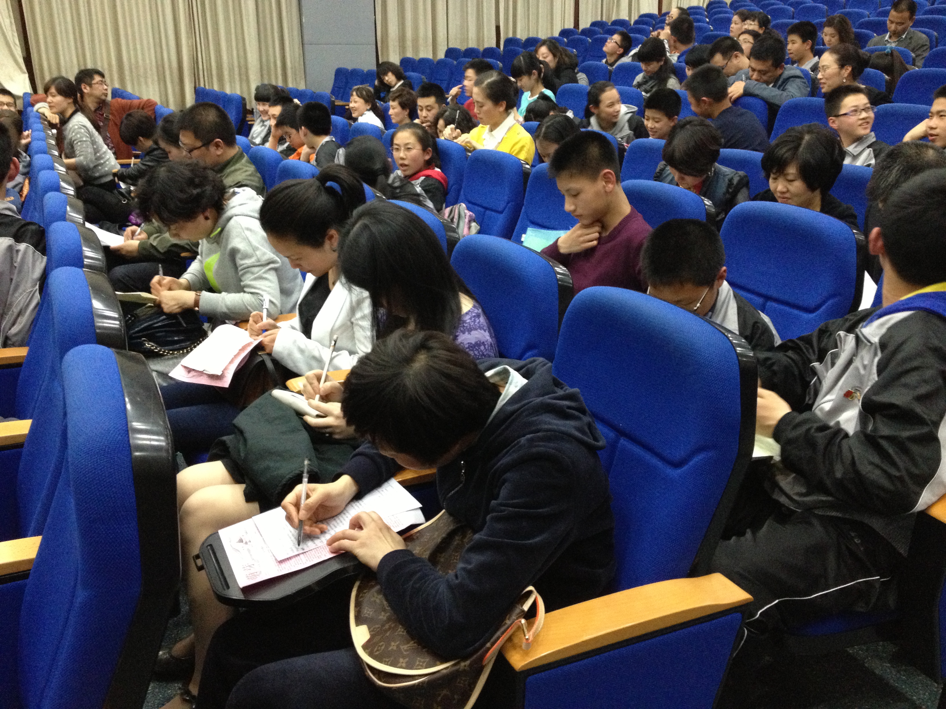 心理健康测量工作坊成员,在温州实验中学广场路校区七年级五班开展了一次关于“亲子关系与亲子沟通”活动,全班40名学生及其家长参与了此次活动。