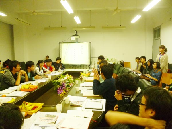 交流会由院学生会主席邱雨庭同学主持并汇报工作。她汇报本学期的迎新工作,例如组织学生会干部为为新生清洗电风扇、为新生初到学校报到与父母留影、国庆期间组织新疆新生游温州走进同学家庭等,这些贴心工作受到了兄弟学院学生会主席的赞赏,一些学院当场表示明年的迎新也要办一个这样的活动,让现场的成人色情