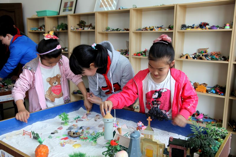 此次活动共开放5个实验室,分别是蒙特梭利教学实验室、感觉统合实验室、自然科学实验室、心理实验室、沙盘演练室。上午9:30两所学校近40位小朋友在老师的带领下到达北校大门,他们就像一群快乐的小精灵集合在校门口,我实验中心老师和学生志愿者在门口负责接待,按照自愿原则将其分为5组,每组由一位志愿者引领他们参与每一项活动。刚到实验中心,面对陌生的环境,他们表现得有些不自在,但实验室各专业指导老师温暖的笑容,关切的眼神,贴心的问候驱走了他们内心的不安。你看,自然科学实验室内有一双双求知的目光,他们认真听着老师的每一句解说,亲眼感受显微镜下奇妙的微观世界;感觉统合实验室里更有他们的欢声笑语;沙盘演练室他们小组合作创设自己心目中的理想世界,有城堡、有沙滩、有原始森林、有幸福家园……