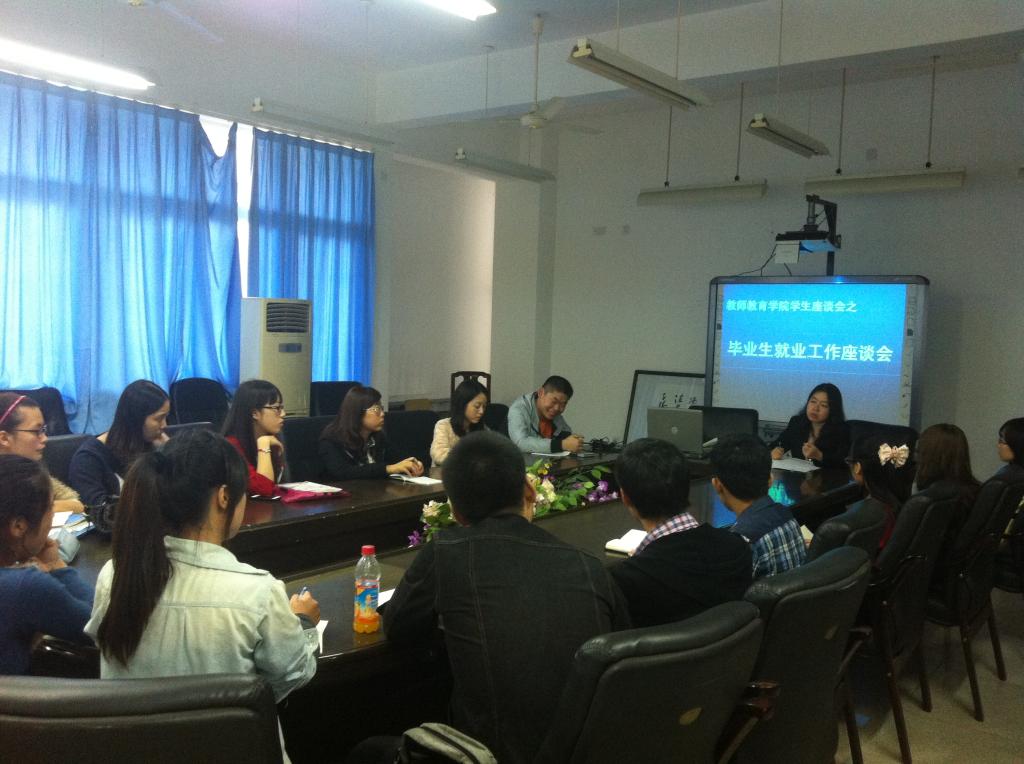 为做学生满意的就业工作,提升就业工作的质量,丰富和提升学区管理模式下的学院就业工作内涵,10月31日下午,学院召集2013届毕业生代表进行了座谈,会议由学生科陈秀雅老师主持,学院主管就业工作的嵇小怡副书记参加了座谈会。