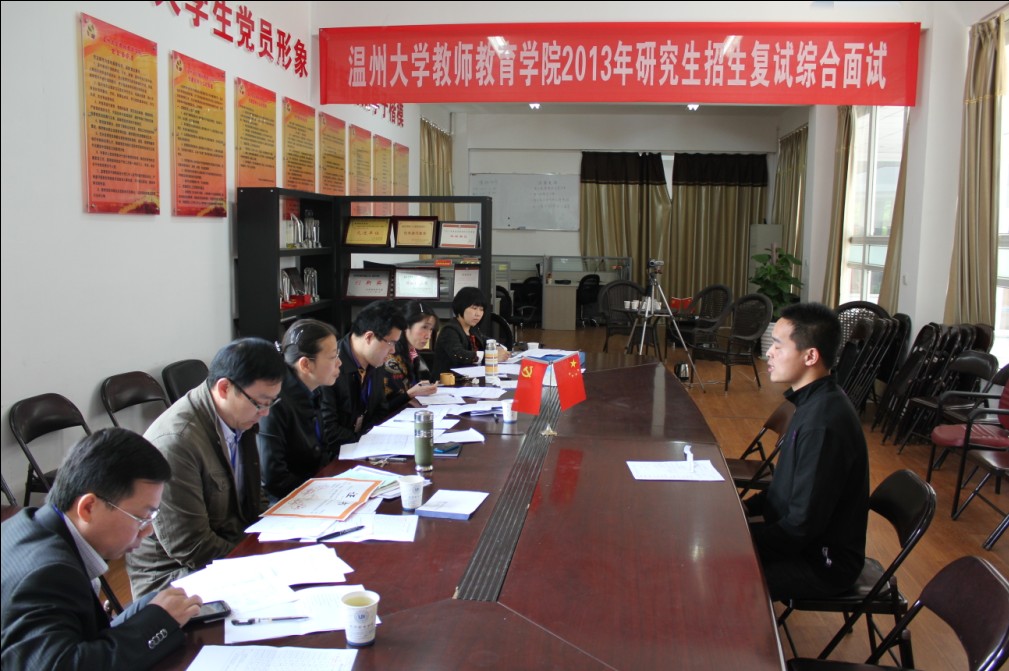 整个面试过程紧张而有序进行,在持续近四个小时后圆满结束。依据我校2013年研究生招生工作要求,考生的综合面试成绩将与初试成绩、外语听力与口语水平测试、专业课笔试等综合计算后确定待录取名单。