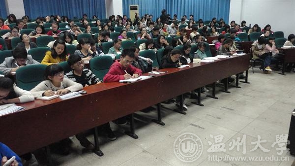 黄老师在讲座中,主要向毕业生们介绍了2013教师招聘考试教育综合知识预测与分析。黄老师先介绍了考试的组成——笔试和面试,笔试包括教育综合知识与专业知识和教学法,而且经过笔试、面试层层选拔,录取率只有百分之二三十,可以说竞争是相当激烈的,所以怎样在众多的毕业生中脱颖而出,就要有备而来。接下来,黄老师详尽地阐述了教育综合知识考试的内容和特点。内容包括教育学、心理学、教育政策法规和新课程改革相关知识,而它们的特点则是偏难、灵活、突兀、时新、综合和热点,黄老师对每一个特点都提供了案例,能够让同学们近距离地感受一下考编的真题,为将来真正考编打下基础。老师不仅用生动形象的案例为他们讲解,还用幽默风趣的语言活跃了现场气氛,学生兴致勃勃。