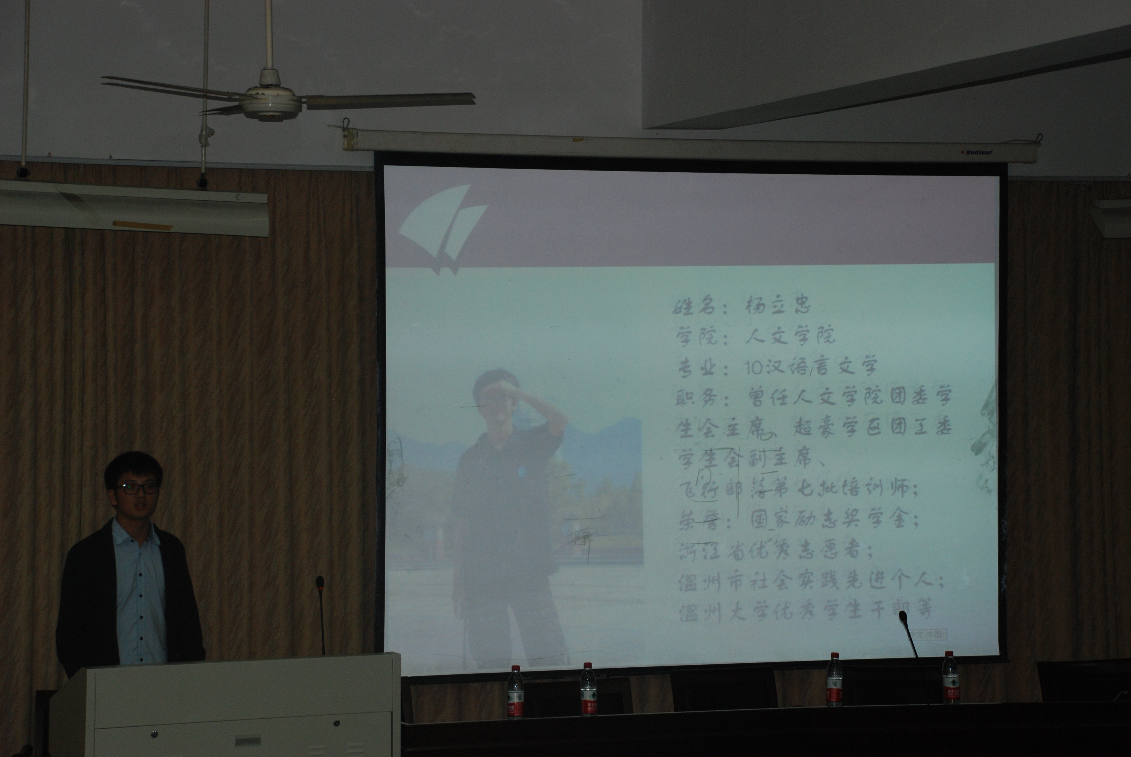 组织部部长周颖对本次的交流会做了简单的介绍,然后邀请青马班副班长杨立忠和团干学员们一起分享他的工作经验,他以幽默的语言围绕学会学习、快乐、专注、简单、孤单、低调和自责这几点,介绍了他在大学3年里学生会工作中的经验和一些感触。第二位和我们分享交流的是青马班学院杨凯文,他围绕细节、热情、学习和团队这四方面和我们分享了他在校团委的工作经验。在大会最后各位骨干培训班的学员纷纷向这几位青马的学长学姐提出了自己在工作中遇到的问题,他们对这些问题都一一做了解答。