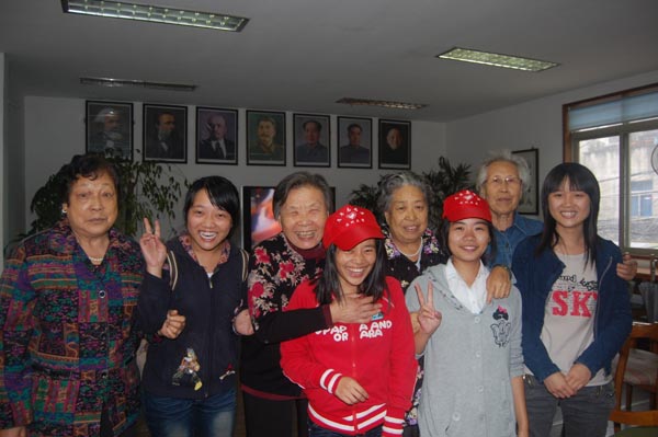 表演结束后,志愿者与老干部们拉起了家常,有部分则跟老人们打起了麻将。在聊天的时候,老人们都一个劲的夸我们的表演!在最后要走的时候还一定要我们把剩下的水果带走,送我们到了门口后,还不停地叮嘱我们要常来玩。呵呵,多么和蔼可亲的老人!我想他们其实是很希望我们这些后辈们去看看他们的!看!他们笑的多么开心! (10教技本:杜月美)