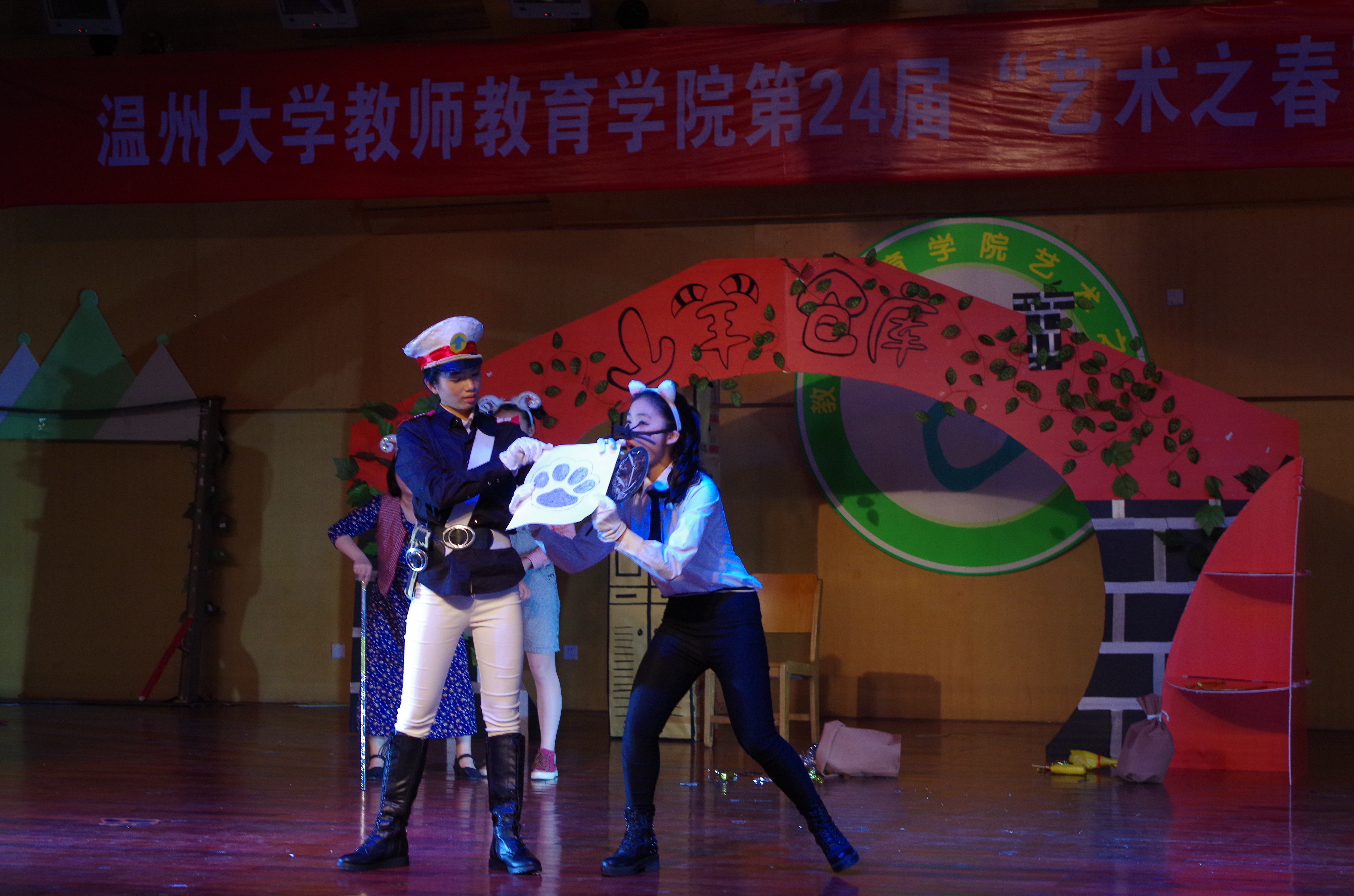 首先出场的节目是13大专2班带来的童话剧《老虎拔牙》,演员们扮演了大森林里的小动物们,栩栩如生。最后在小动物们的齐心协力下,让凶猛的老虎掉了牙齿。从这个儿童剧中,同样也告诉小朋友们要勤刷牙才可以防止蛀牙。接下来有13大专3班带来的《小红帽》则改编了耳熟能详的童话故事《小红帽》,加入了时尚元素和幽默因子,引发了在场大朋友和小朋友们的阵阵欢笑。接下来的四个节目都是11学前本为大家呈现的,分别是《谁动了我的仓库》、《九色鹿》、《不摘花》和《葫芦娃》,在场的小朋友们最喜欢的是《葫芦娃》,还有的小朋友唱起了这首儿歌呢!