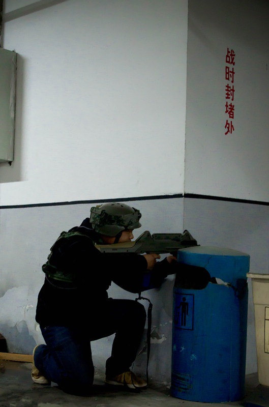 进行了短暂的试打后,紧张又刺激的对战终于吹响了号角。每个队都好像训练有素似的,谁攻谁守,谁打埋伏,谁做掩护,都安排得井井有条。霎时,偌大的场地里回响起了此起彼伏的“枪”声。每个人都必须全身心地投入战斗,因为冷不防在哪个角落就有一支“枪”正对着你呢。于是,团队之间的合作显得至关重要——每个人都不是独自的战斗者。历时两个小时的精彩大战很快就结束了,大家都有些意犹未尽。