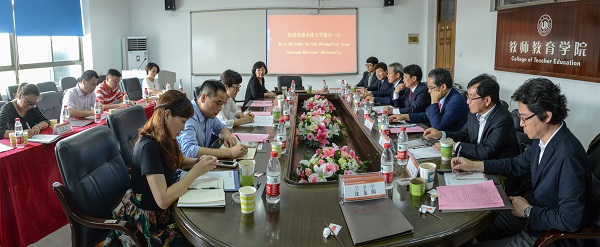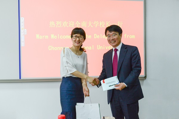 。钱强副校长、孙芙蓉院长、杨立淮书记、杨丽君副书记及学院教师代表热情接待了韩国客人。