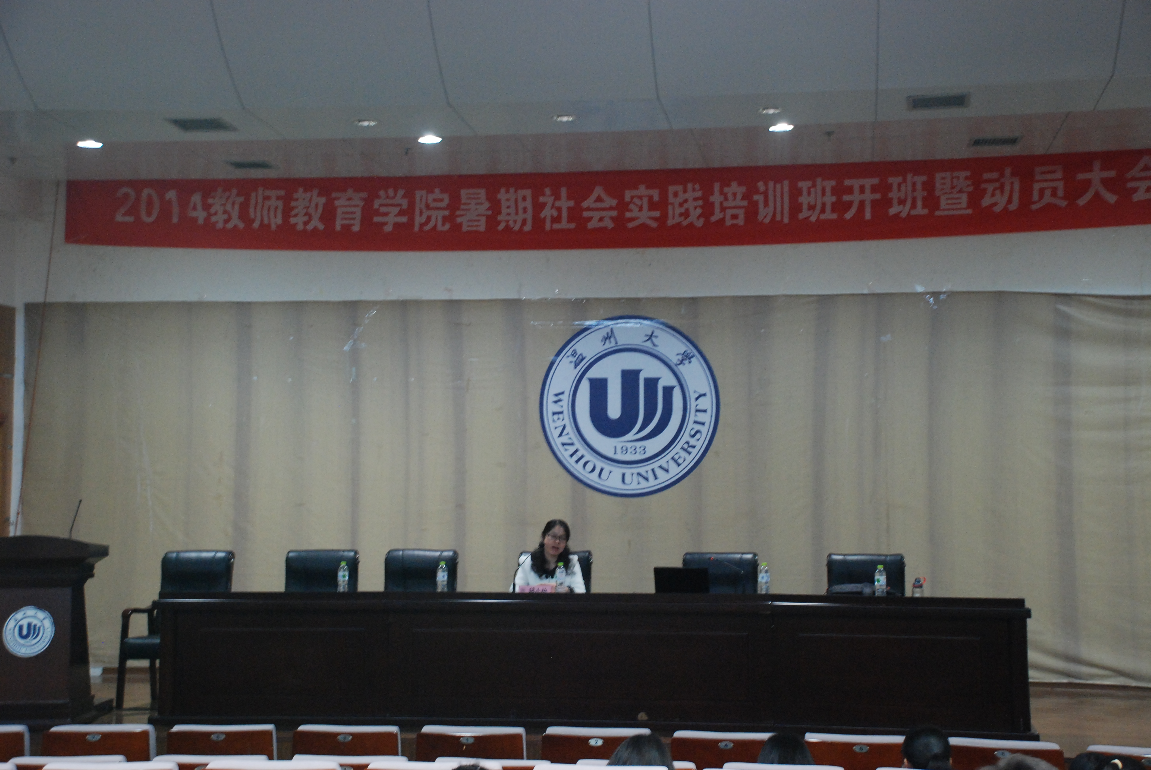 暑期社会实践培训班开班曁动员大会在北校信息楼报告厅举行。院党总支副书记嵇小怡老师出席,学院辅导员严晓秋老师,全体13级本科和部分12级本科学生参加会议。