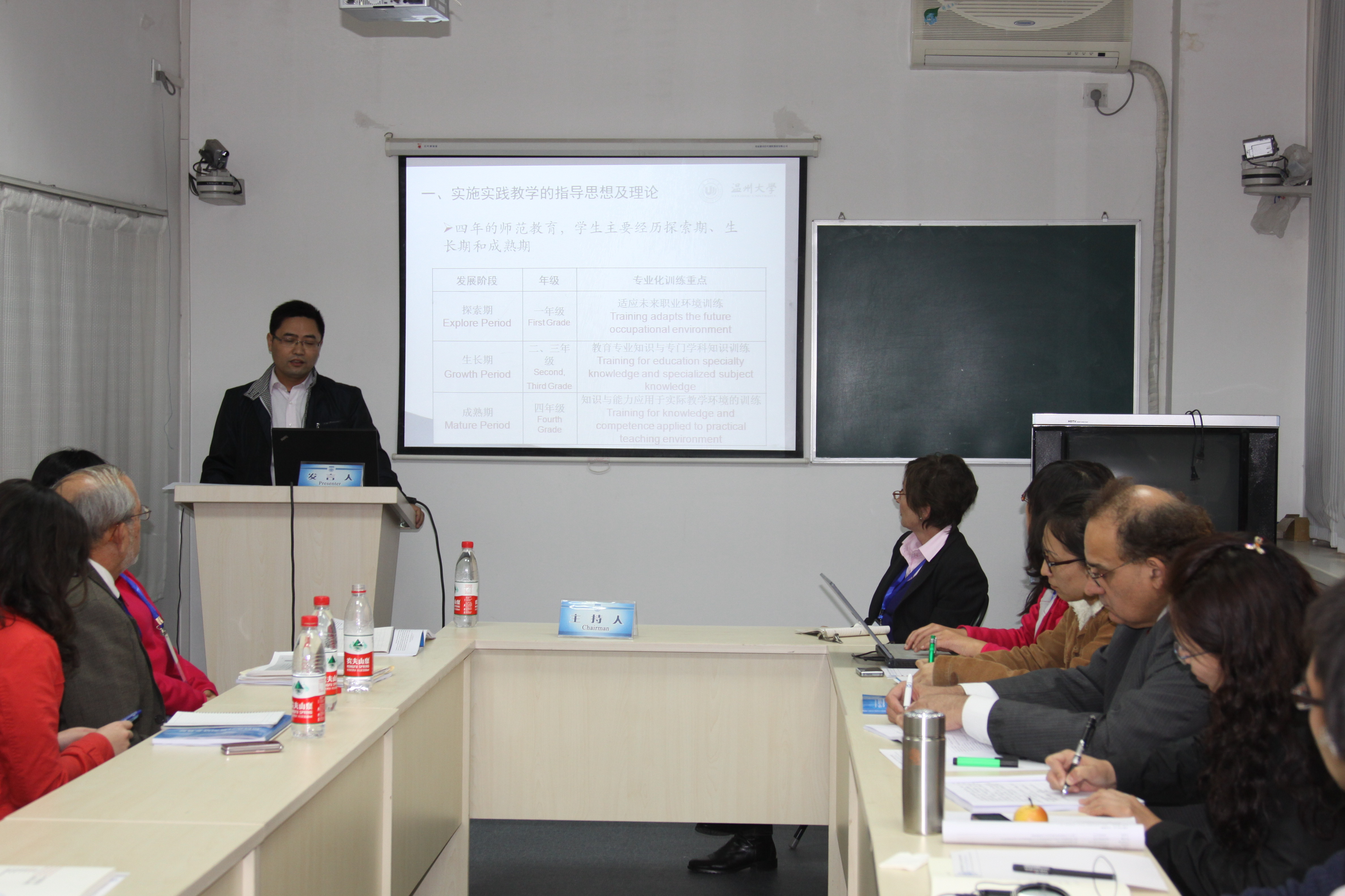胡来林教授于28日下午做了题为“Design Research on Implementation Scheme about Practical Learning in Teacher Education Specialty ----Educational Technology as an example”,与会者对我校教师教育实践课程体系改革具有深厚的兴趣,并提了多个感兴趣的问题,胡来林教授做了一一回答。在30日下午胡来林教授成功主持了教师培训专题讨论。