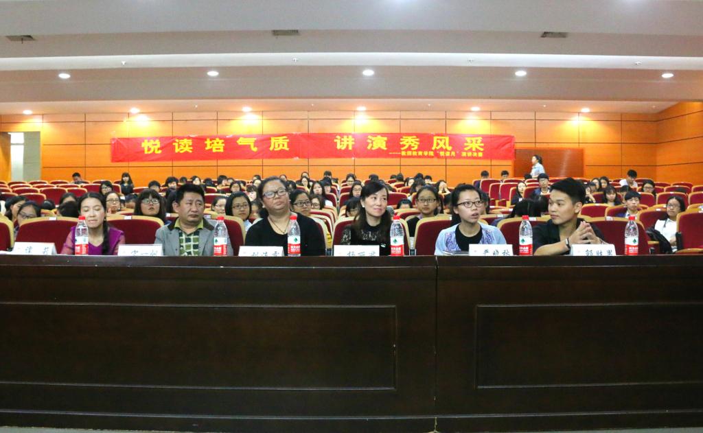 2015年10月14日18:30,由教师成人色情 举办的“悦读月”演讲决赛于成人色情 南校雁山厅顺利举行。小教系书记刘海霞,语言工作坊指导老师宋一帆以及小教系老师谭莉等评委,院党总支副书记杨丽君、学生科辅导员严晓秋、邵胜男等老师,各位选手、工作人员及学生观众共计220余人出席活动。