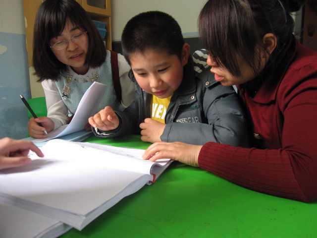 在康复站王贤志主任的带领下,我们对幸福驿站儿童的整体情况和发展水平有了一个大致和整体的了解,而为了更好地为儿童康复训练提供指导和理论支持,我们在本次活动中采用两种不同的测量工具,分别是瑞文推理测验联合型以及皮博迪图片词汇测验(PPVT),主要是从智力图形推理和词汇理解能力两个方面对儿童的整体智力水平进行一个较为科学的评估。测量过程中,心理测量工作坊的成员以一对一的个别测量方式,用生动清晰的指导语向孩子们解释操作方法,同时观察记录每一位儿童在做题时的状态,以便测验结束后对测验分数作出准确而客观的解释。同时,心理测量工作坊的成员们也积极与家长和康复站的老师进行交流沟通,对本次活动的目的进行说明。