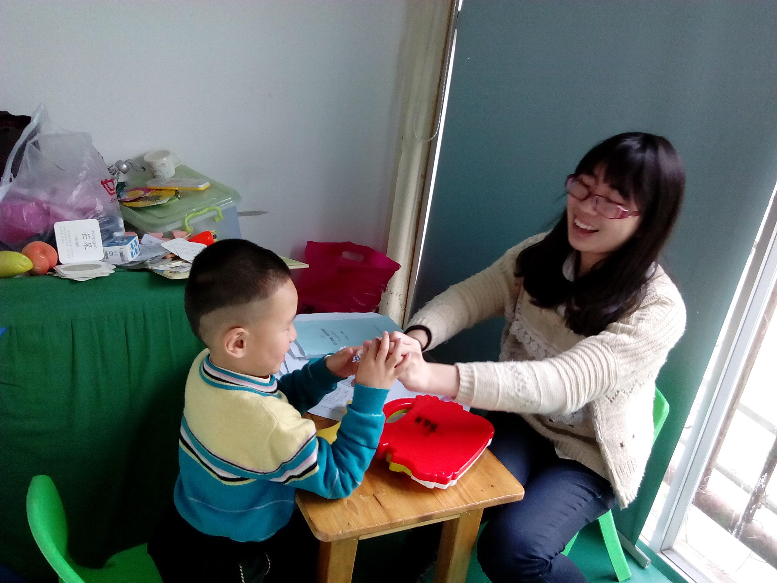 心理测量工作坊的成员在郭文斌老师的带领下来到鹿城区幸福驿站儿童康复站,开展关爱自闭症儿童活动。