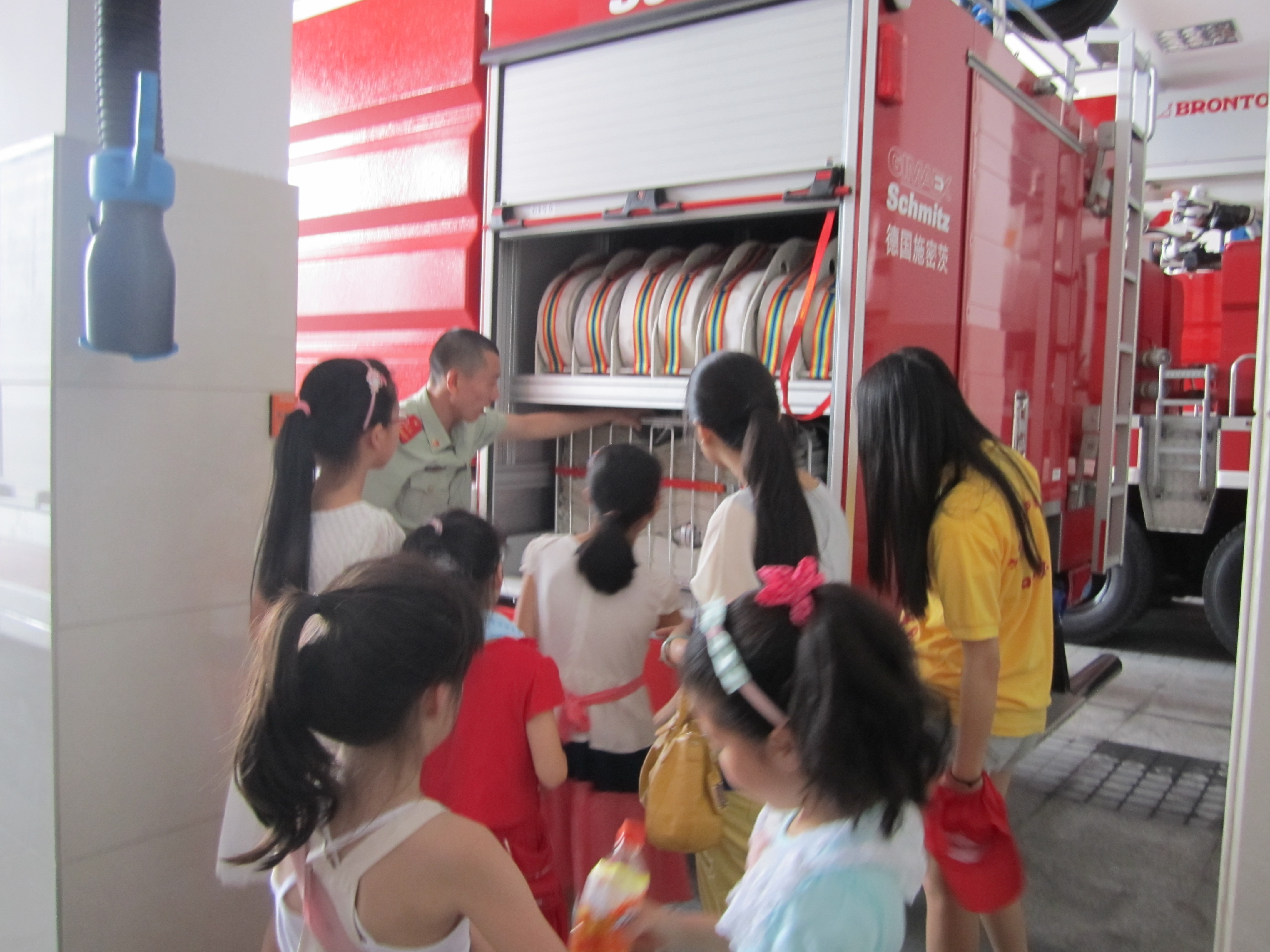 24日上午,四名知心姐姐党支部成员带领小学生来到了南白象消防支队,小朋友们一看到消防指挥训练中心就兴奋不已,迫不及待的下了车。消防支队的一位班长热情地接待我们。在这位消防员班长的带领下,我们参观了执行各种不同复杂任务的消防车,小朋友们时不时的还提出自己的疑问,表现出来浓厚的兴趣。在班长的讲解下,五位小学生还兴趣盎然地参观了消防车,对消防车内部结构有了一定的了解。当班长在介绍各种用于火场救险的工具时,通过了解工具的操作,小朋友们对消防特警的训练有素和精湛技能有了更加直观的感受。班长说:“我们接到报警,从三楼下来,到穿好执勤衣服并上车出发,完成一系列动作和流程,只需要一分钟!”小朋友们听了班长的叙述,发出了赞叹声,表示深深敬佩!